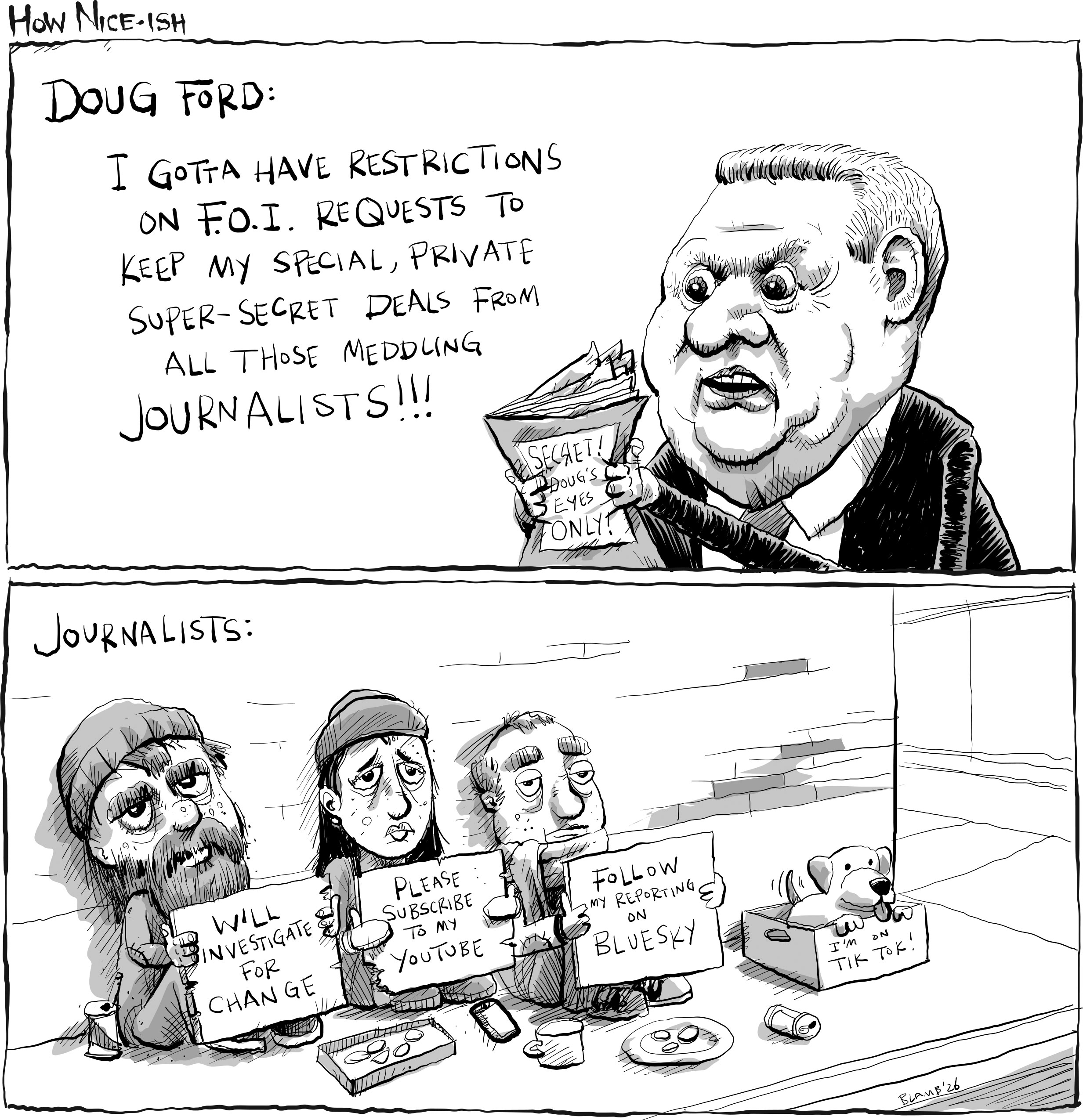 Ford is also meddling in Ottawa where he is trying to get the Carney government to amend the Criminal Code to allow everyone to carry pepper spray so we can attack one another should we feel threatened. He is not dealing with the $500-billion provincial debt, health care, education, or the housing crises. These are true provincial responsibilities. Be a premier, or at least try to be one.