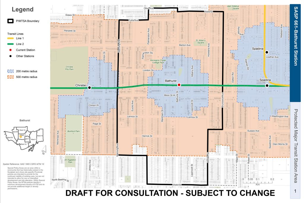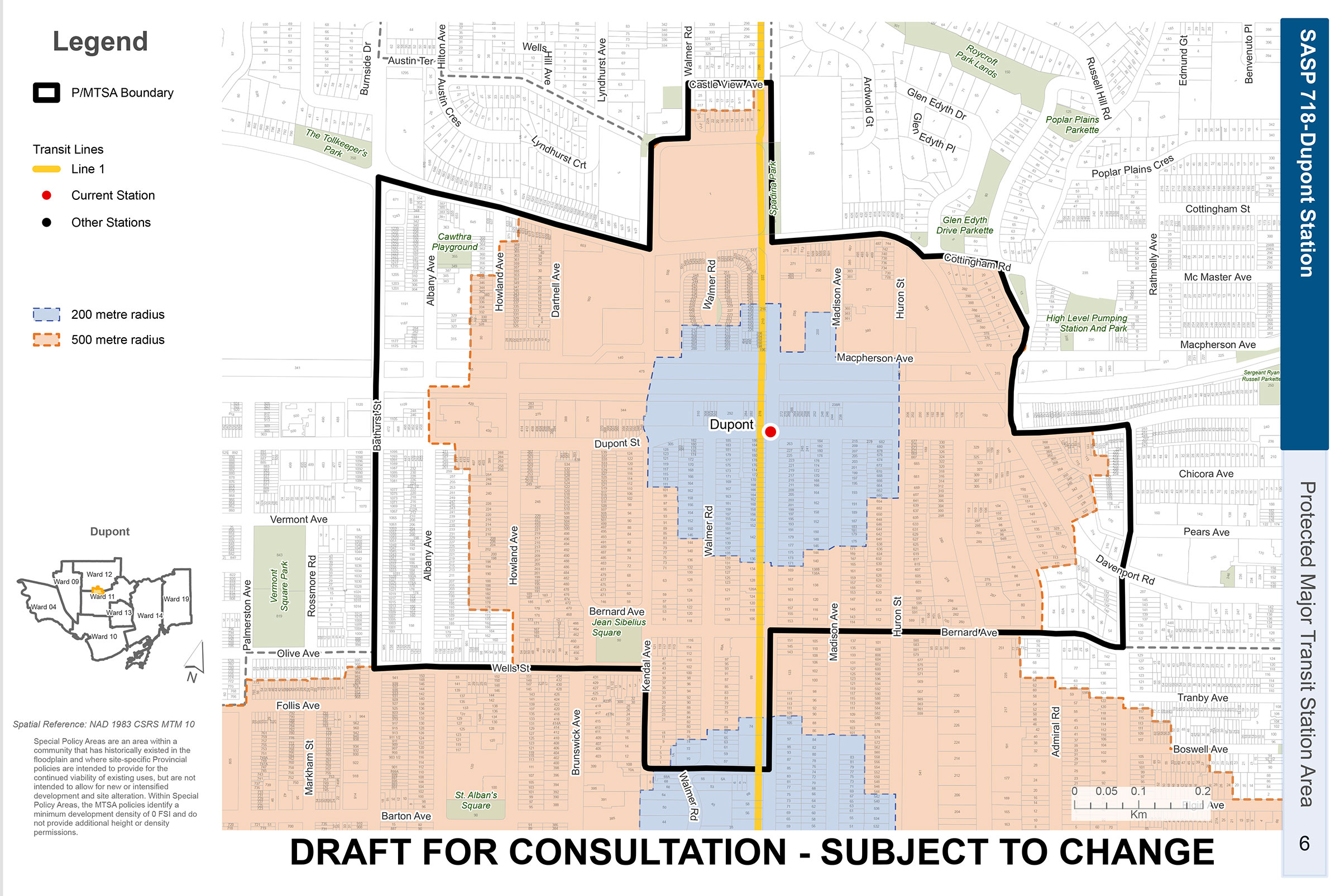 The city and the provincial minister of Municipal Affairs and Housing established P/MTSAs through Official Plan Amendments (OPAs). Subsequently, in August 2025, the minister’s approval brought Chapter 8 of the Official Plan into effect, fostering a wave of changes like increased density and height permissions within 200 and 500 metres of the stations, as well as required minimum densities in PMTSAs.