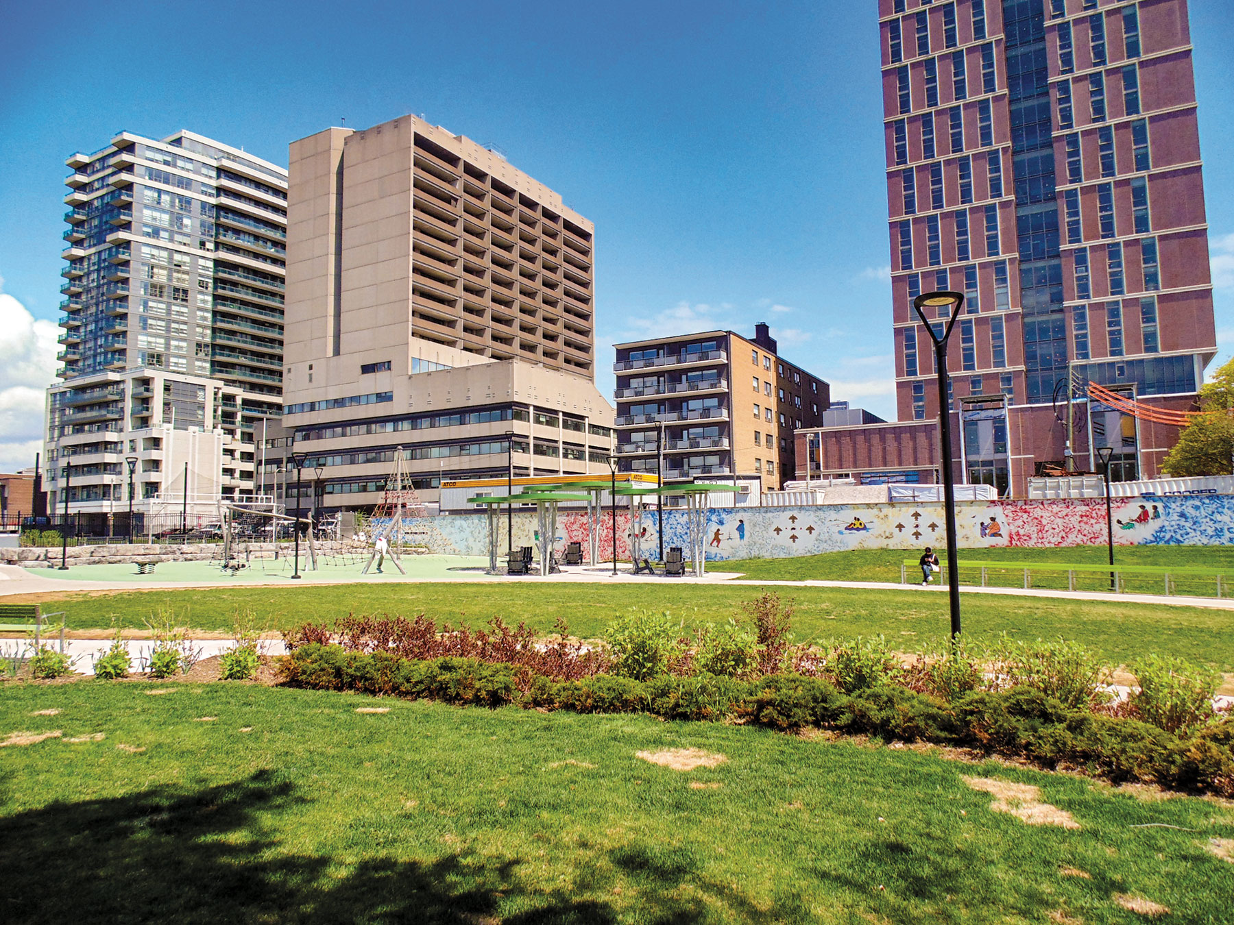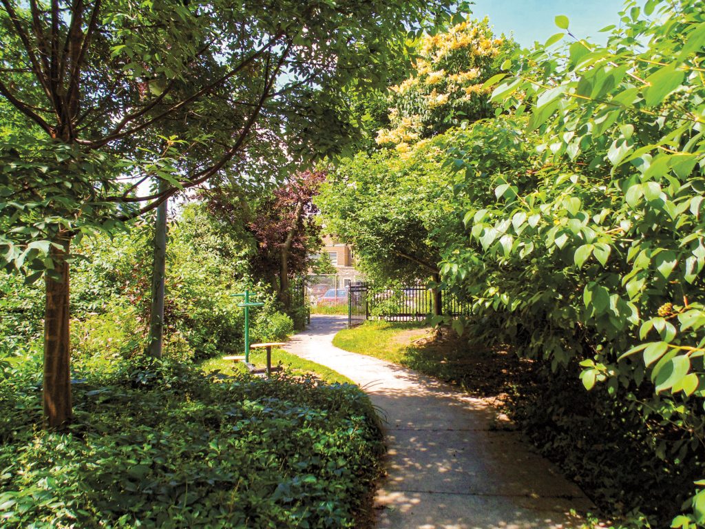 Reason to go: While Robert Street Park is located just a stone’s throw from the hectic intersection of Spadina Avenue and Bloor Street, its extensive amenities and quiet atmosphere provide a feeling of seclusion. The park was created as a part of the Robert Street Field Project by the University of Toronto. The project not only built this greenspace but installed a geoexchange system under the soccer field next to it, to reduce greenhouse gas emissions. Muskoka chairs provide comfortable seating, mini pavilions built in the shape of trees supply shade, and long benches surround the perimeter of the greenspace. There is also a rope playground structure for children to play on and a butterfly garden. An Indigenous art piece on the back wall of the park provides a beautiful backdrop to the space. Overall, Robert Street Park is a great place for kids and adults to relax in the city.